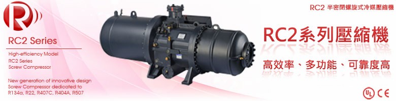 漢鐘RC2系列半密閉螺旋式冷媒壓縮機是專為冷凍空調系統的應用所開發,高負載運轉之設計,能達到使用者在儲冰、熱泵系統與冷凍等各種應用工況上的高效率與高信度需求